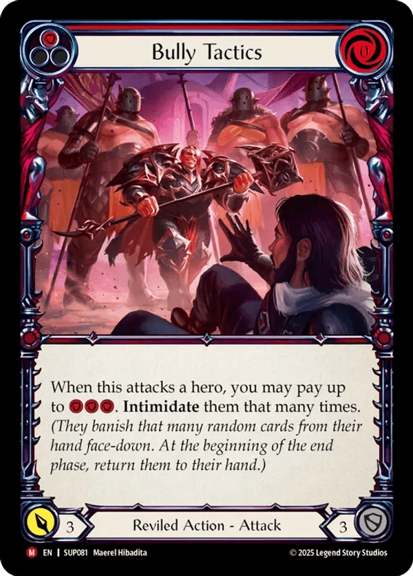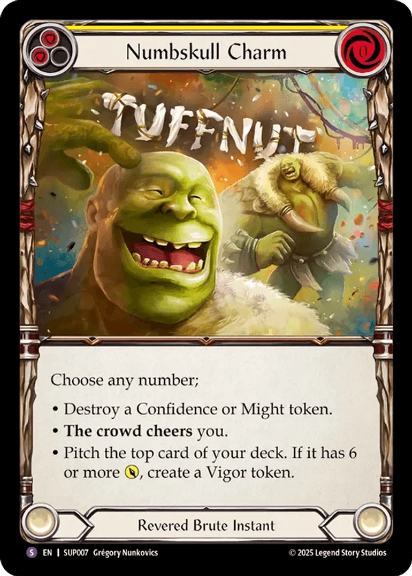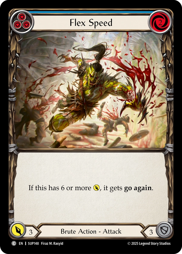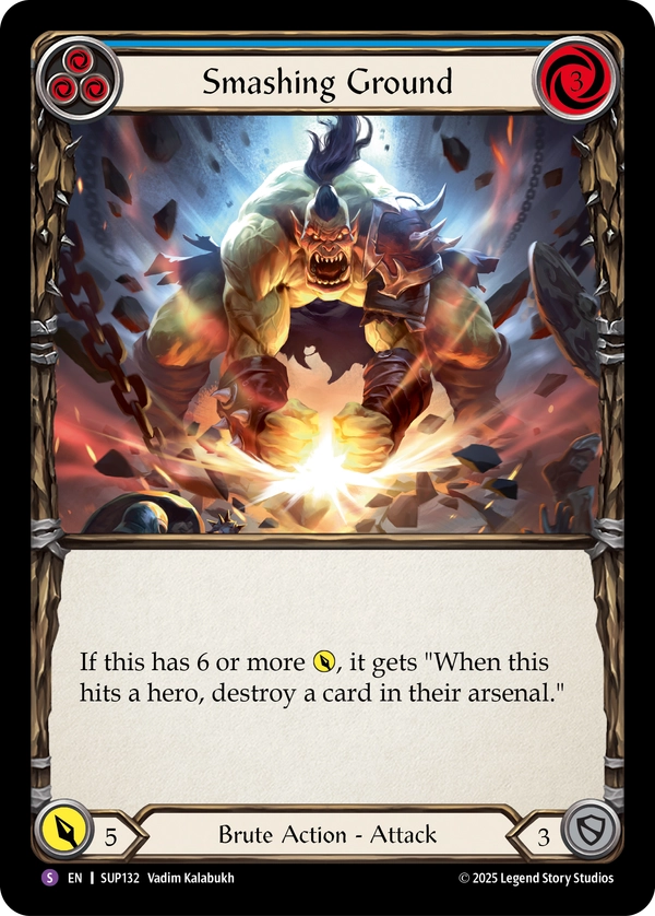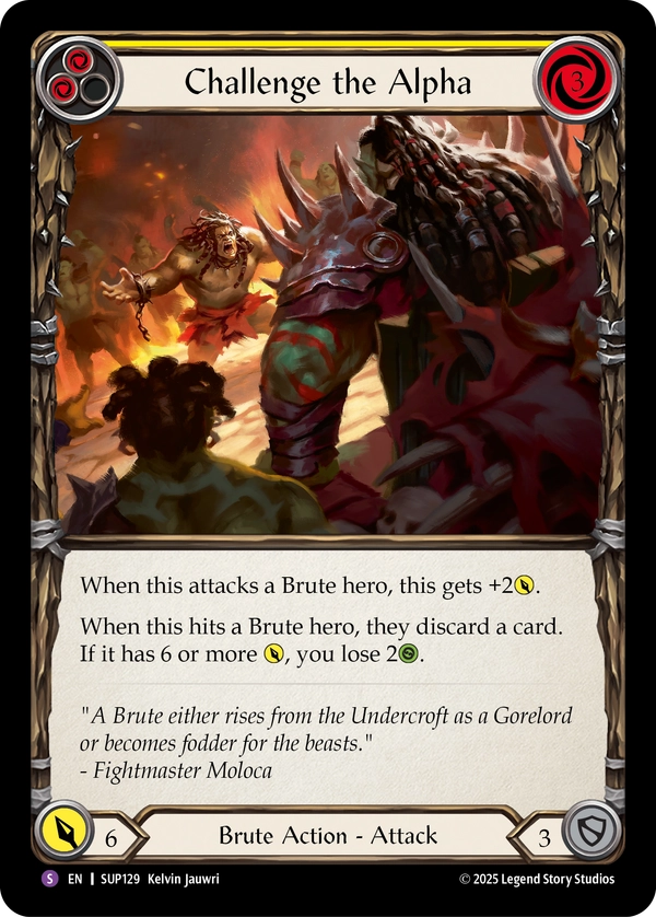 Super Slam is Flesh and Blood’s 17th booster release and takes players back to the Deathmatch Arena that was introduced in Heavy Hitters. Battle-tested Guardians and Brutes will duke it out for the crowd favor, coin, and the chance to become a living legend of the Deathmatch Arena. The heroes in the set are fine getting cheered or jeered, as long as it matches their revered or reviled status to pay out in the form of various tokens ranging from confidence, toughness, might, and vigor. Meet Tuffnut, a three-intellect hero that has an ability that lets him pitch a card from the top of his deck and Lyath Goldmane, the first five-intellect hero in Flesh and Blood.