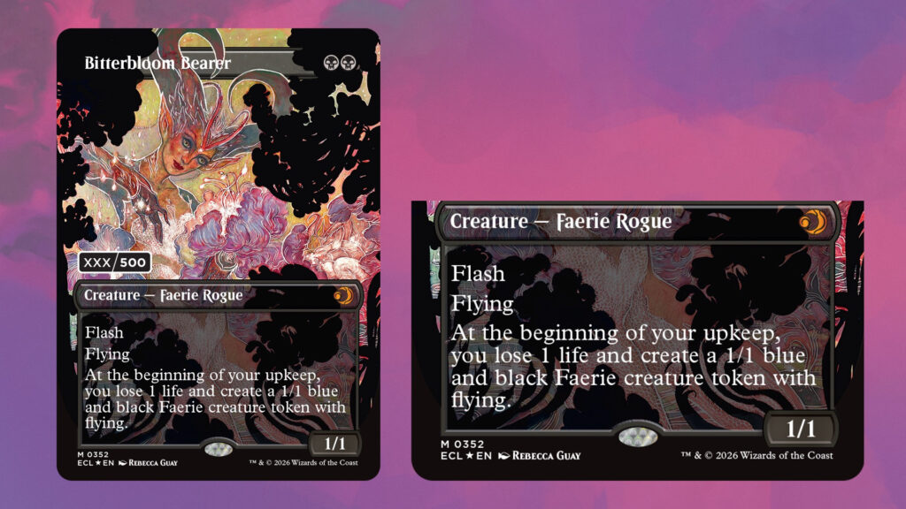 The Booster Fun treatments stand out in a world of amazing art. Bitterbloom Bearer is the headliner for the set, featuring multiple treatments. The serialized version with art by Rebecca Guay will be the absolute chase card from the set.