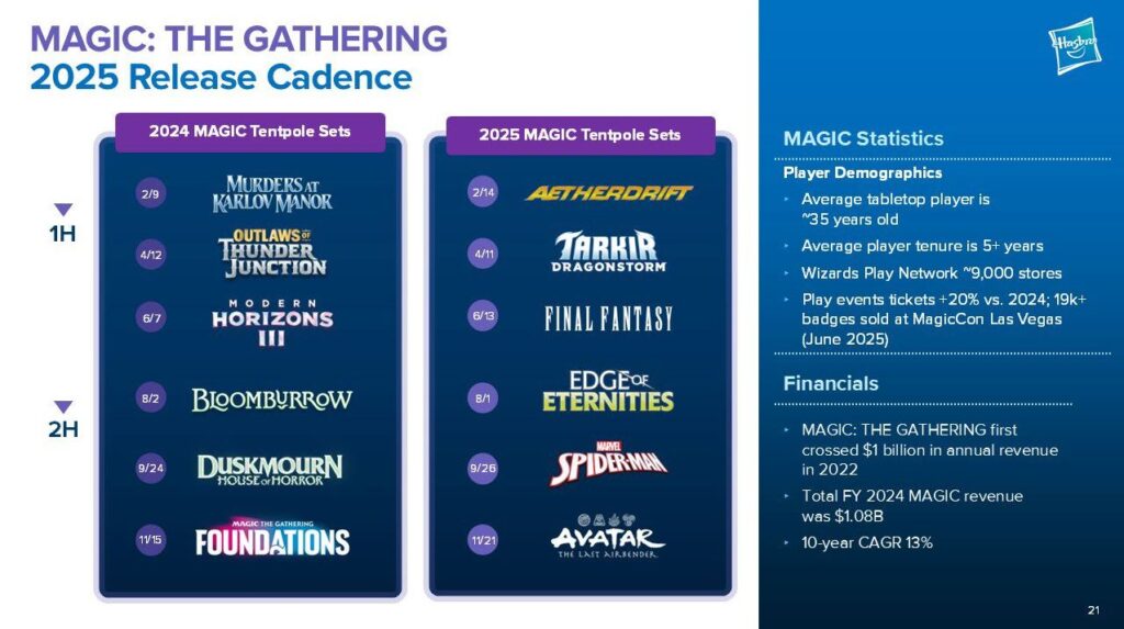 “This isn’t just a one-off moment, it is a clear indication of the power of Magic’s community, our release cadence, and the resonance of our Universe Beyond strategy,” Cocks said during the Second Quarter 2025 Earnings Conference Call. “Magic’s engine of growth is durable, it’s diversified, and it’s accelerating. We’re seeing strength across every KPI (key performance indicator) of the brand. Tarkir: Dragonstorm is on pace to become the top-selling Magic premier set of all time, Final Fantasy is already the highest-grossing Magic set ever, and Secret Lair just delivered the strongest sale quarter in its history.”