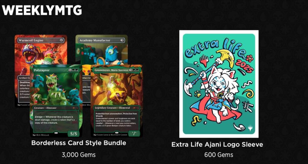 For those that want to get involved on MTG Arena, the card style bundle and Ajani sleeve will be in the Arena shop for gems.