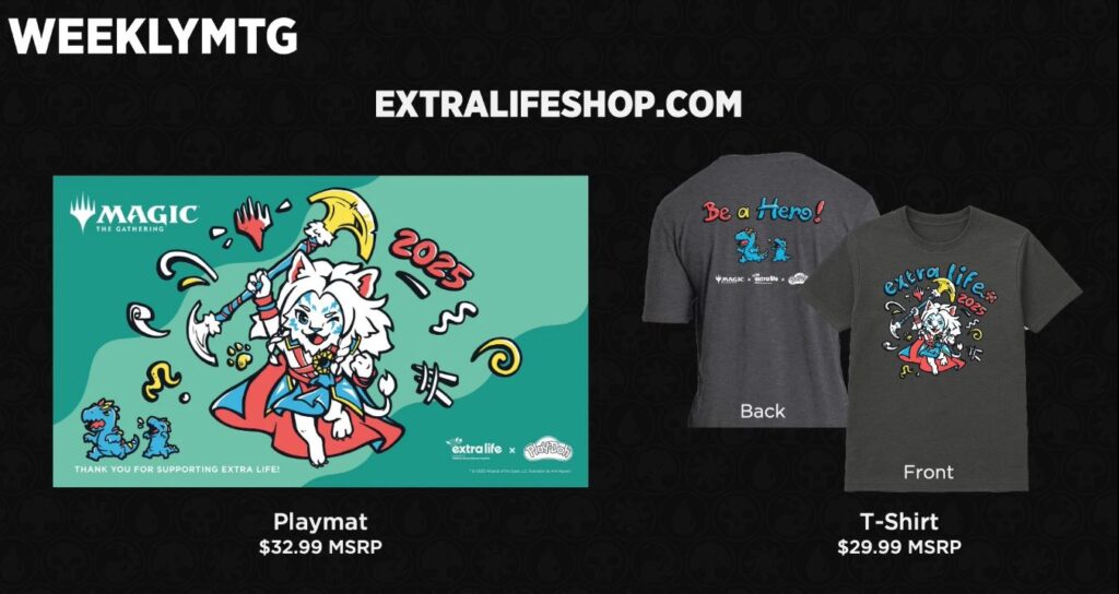 Other swag available from the Extra Life Shop by Ultra Pro to help the cause includes the 2025 playmat and T-Shirt.