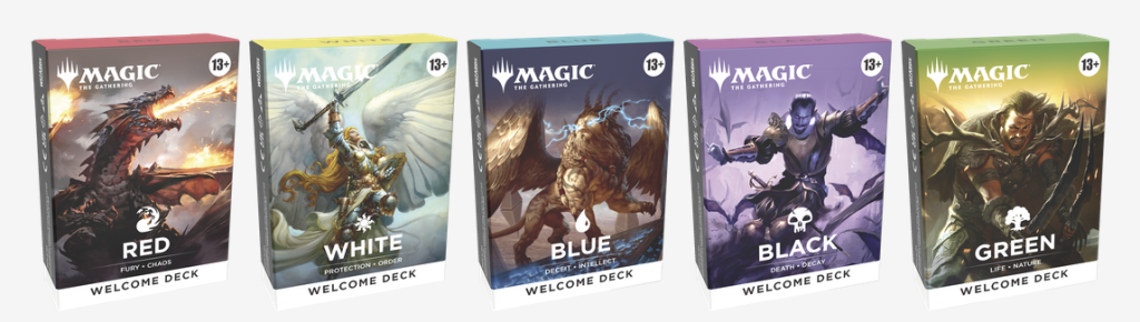 The Welcome Decks for this set have been updated and are now “40-card, single-color decks and no longer include 30-card half decks.”