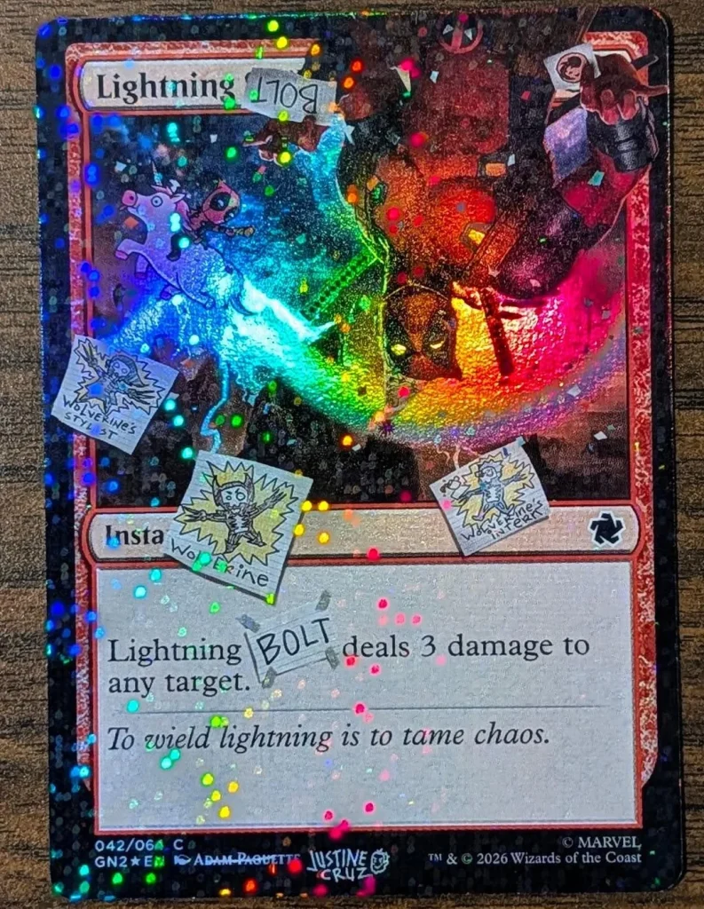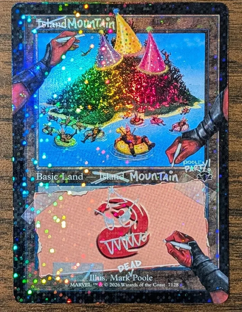 Check out the six cards included in the Secret Lair x Marvel I Fixed It (You’re Welcome) drop, where Deadpool makes some alterations to cards to correct them.