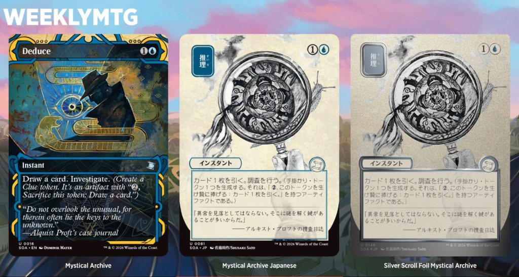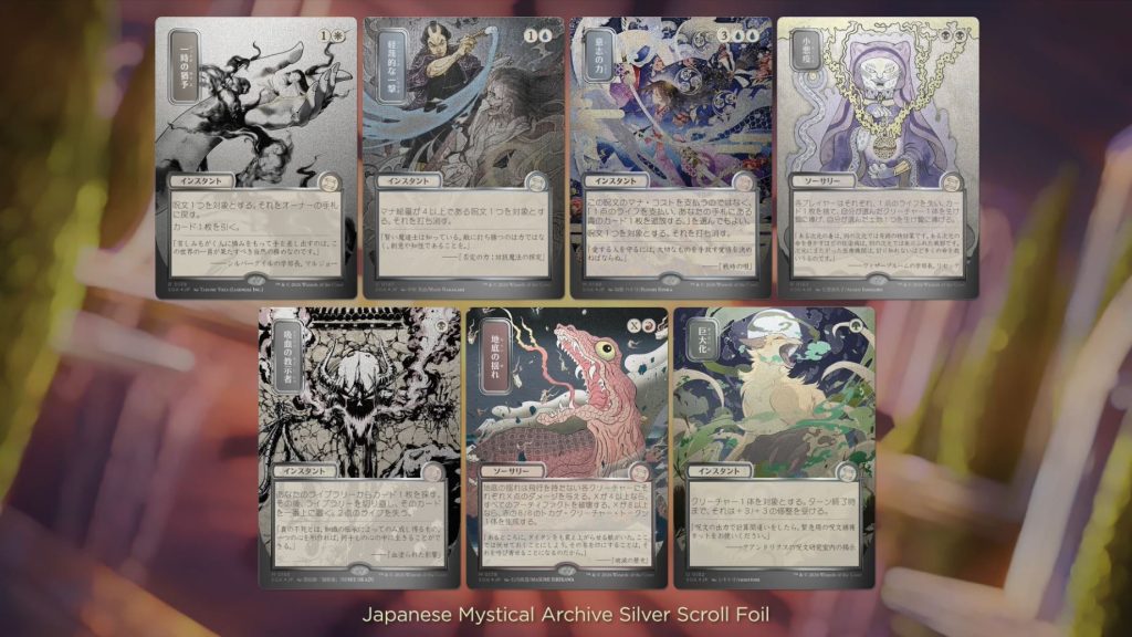 Each card in the Mystical Archive will have a unique English and Japanese frame variant. The Japanese versions also include Silver Scroll variants