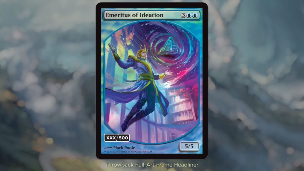 The serialized headliner for the set is a textless Emeritus of Ideation with art by Mark Poole, fitting as he was the artist behind the original artwork of Ancestral Recall.
