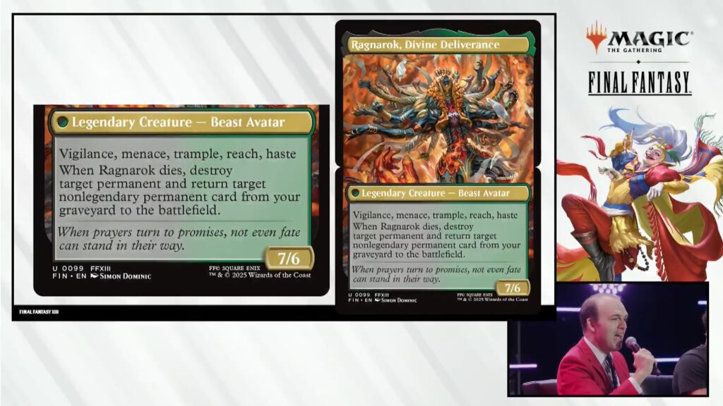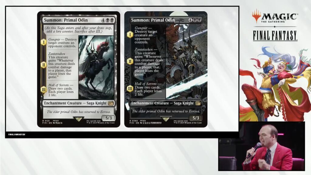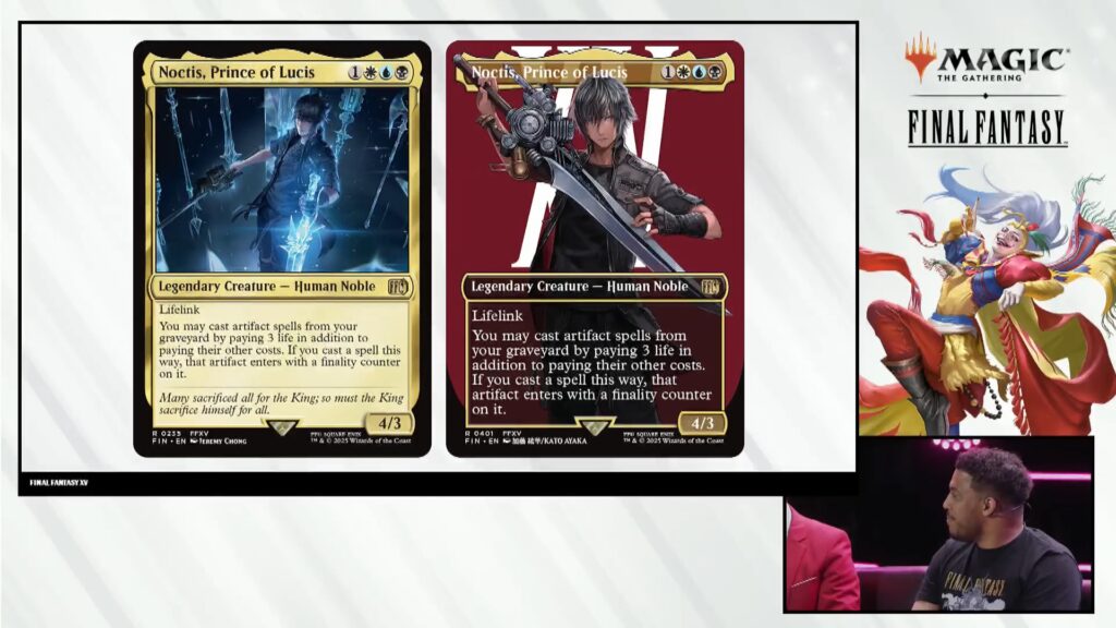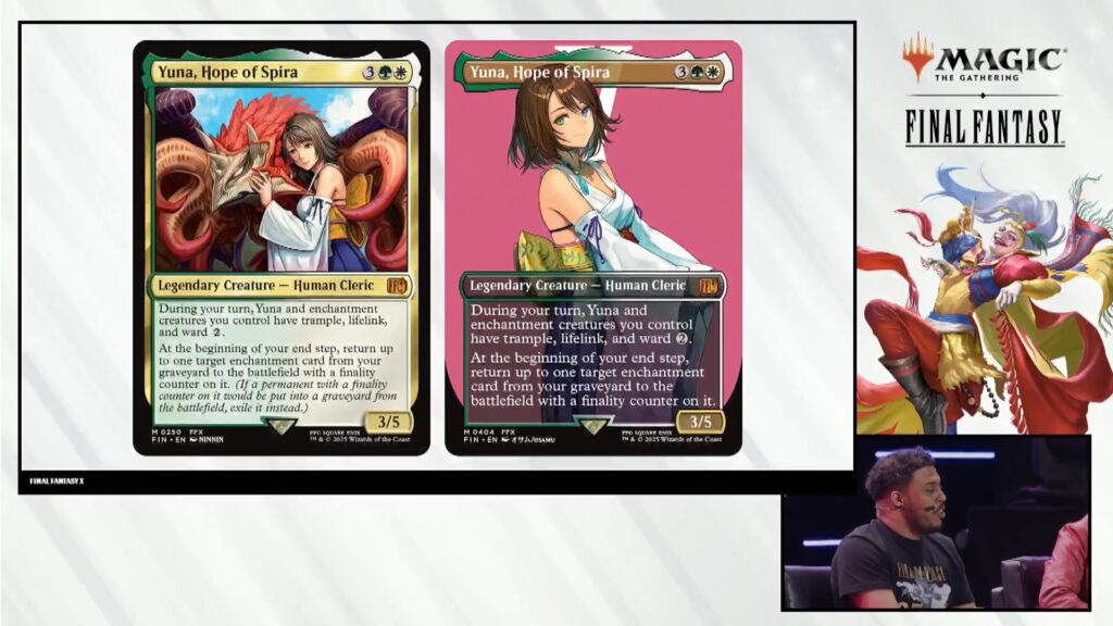 On May 10, 2025, the Magic: The Gathering—FINAL FANTASY set had its debut showcase at the PAX East convention in Boston, MA. Ben Starr, the English-language voice actor for Final Fantasy XVI main character Clive Rosfeld, hosted a behind-the-scenes panel with Wizards of the Coast (WotC) employees Gavin Verhey, Zakeel Gordon, Daniel Holt, and Dillon Deveney. Also appearing onstage were professional wrestlers and Final Fantasy fans Kenny Omega and Adam Cole.