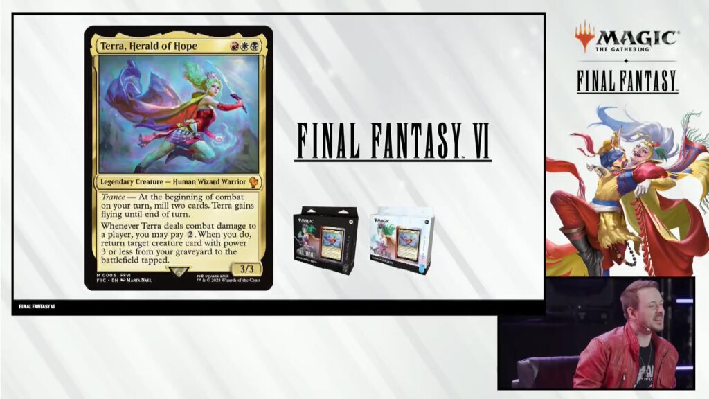 Final Fantasy VI introduces the first of the Final Fantasy Commander 100-card decks, led by Terra, Herald of Hope.