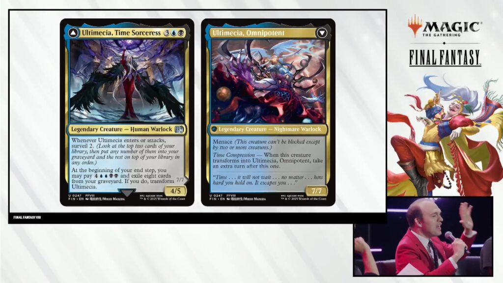 VIII villain Ultimecia’s double-faced card, Ultimecia, Time Sorceress // Ultimecia, Omnipotent, is the first uncommon card to allow its controller to take an extra turn.
