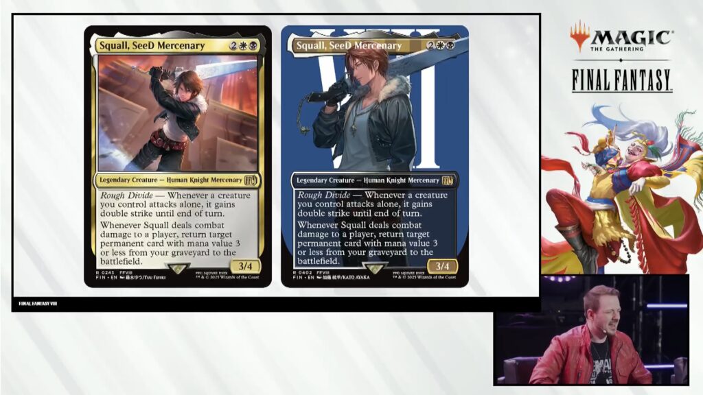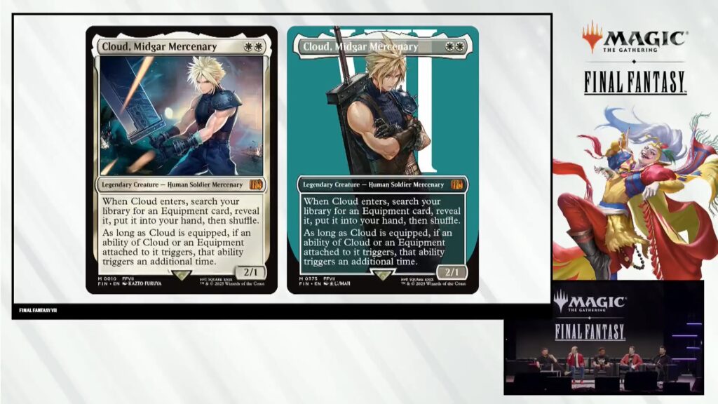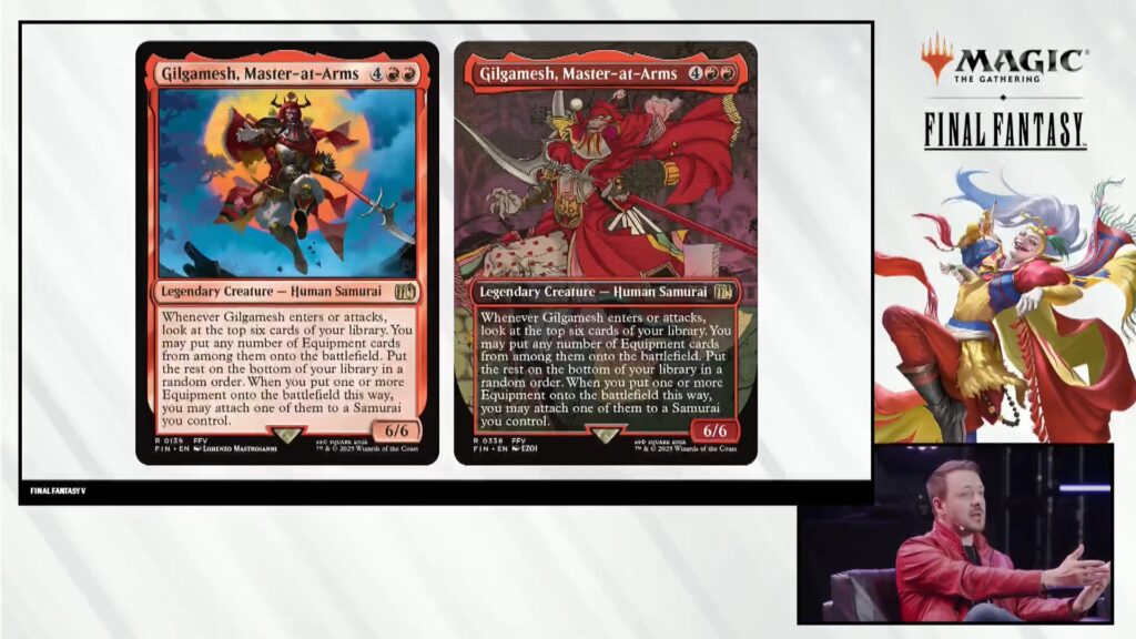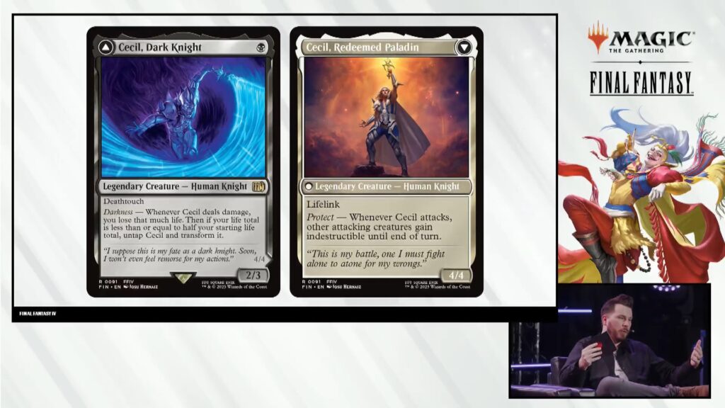 The panel kicked off with the original Final Fantasy game. Garland, Knight of Cordelia // Chaos, the Endless uses the double-faced card (DFC) mechanic to express the villain’s transformational nature.