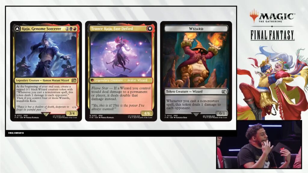 The Final Fantasy IX offerings got off to a villainous start with Kuja, Genome Sorcerer // Trance Kuja, Fate Defied, plus the accompanying Wizard token.