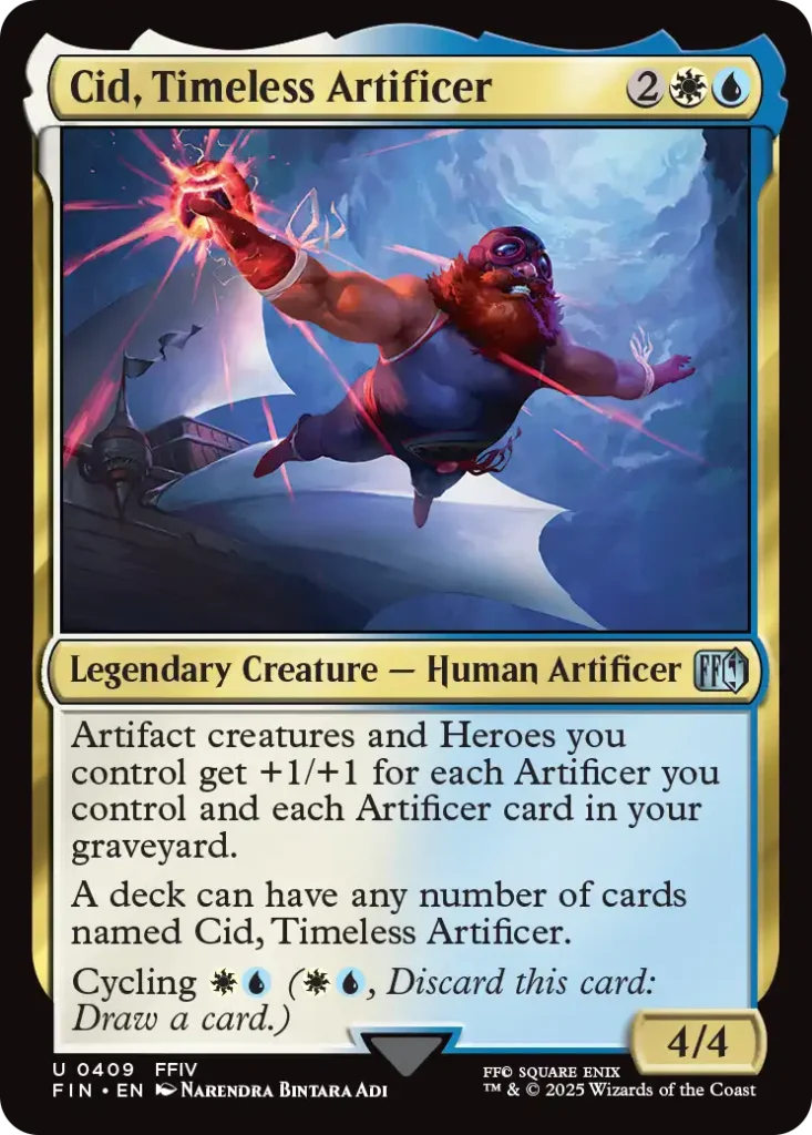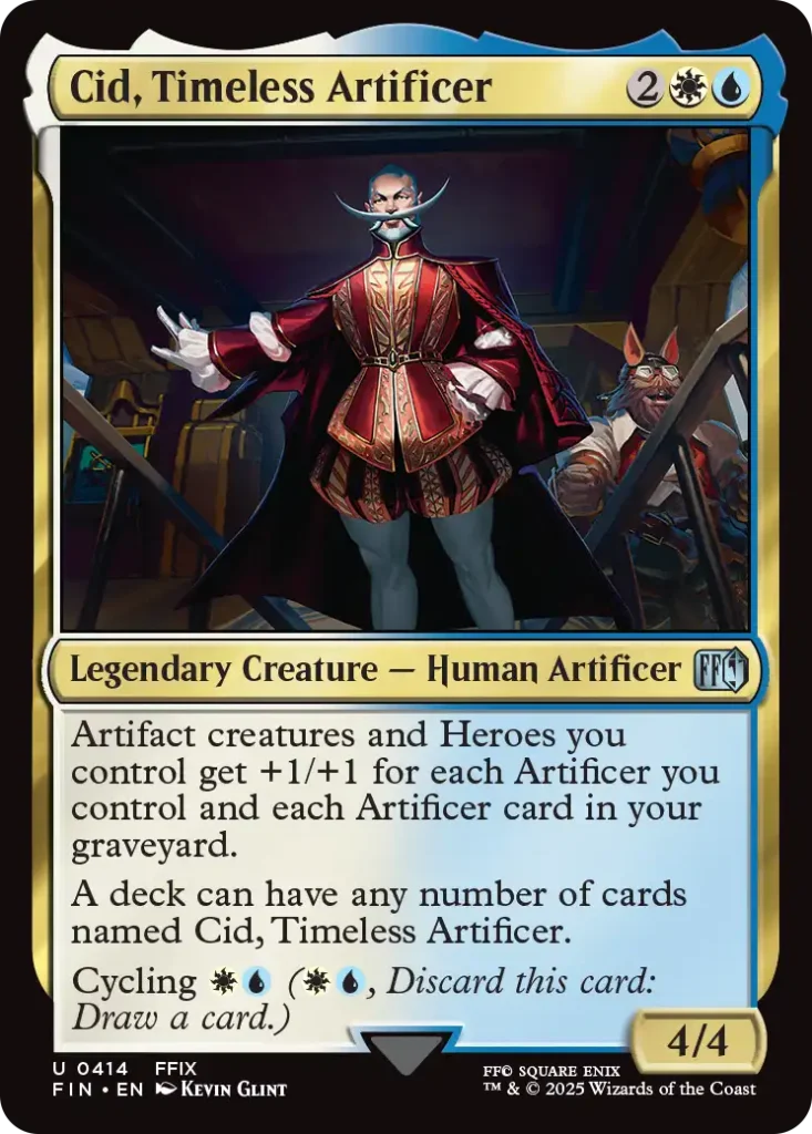 Finally, what would a Final Fantasy set be without Cid? From Final Fantasy II to Final Fantasy XVI, fifteen printings of Cid, Timeless Artificer are available for players. As a bonus, a deck may contain any number of cards named Cid, Timeless Artificer!