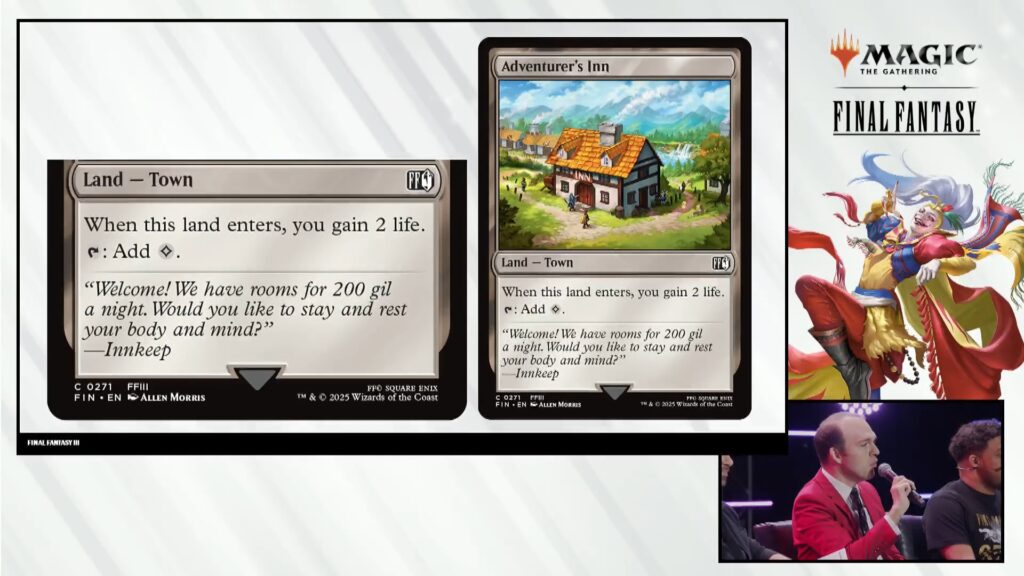 The Final Fantasy III cards also include the first Town, a land subtype, with Adventurer’s Inn.