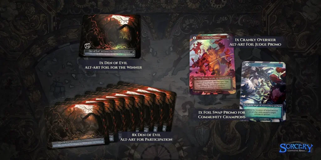 - 1 Foil alternate-art Den of Evil prize card for the champion (single-kit events) or top finishers (multi-kit events)