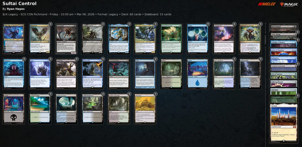 Ryan Hayes won the Legacy $1K on Friday with Sultai Control.